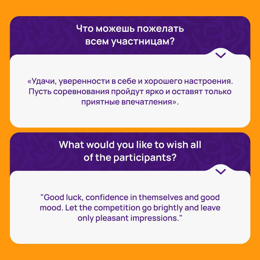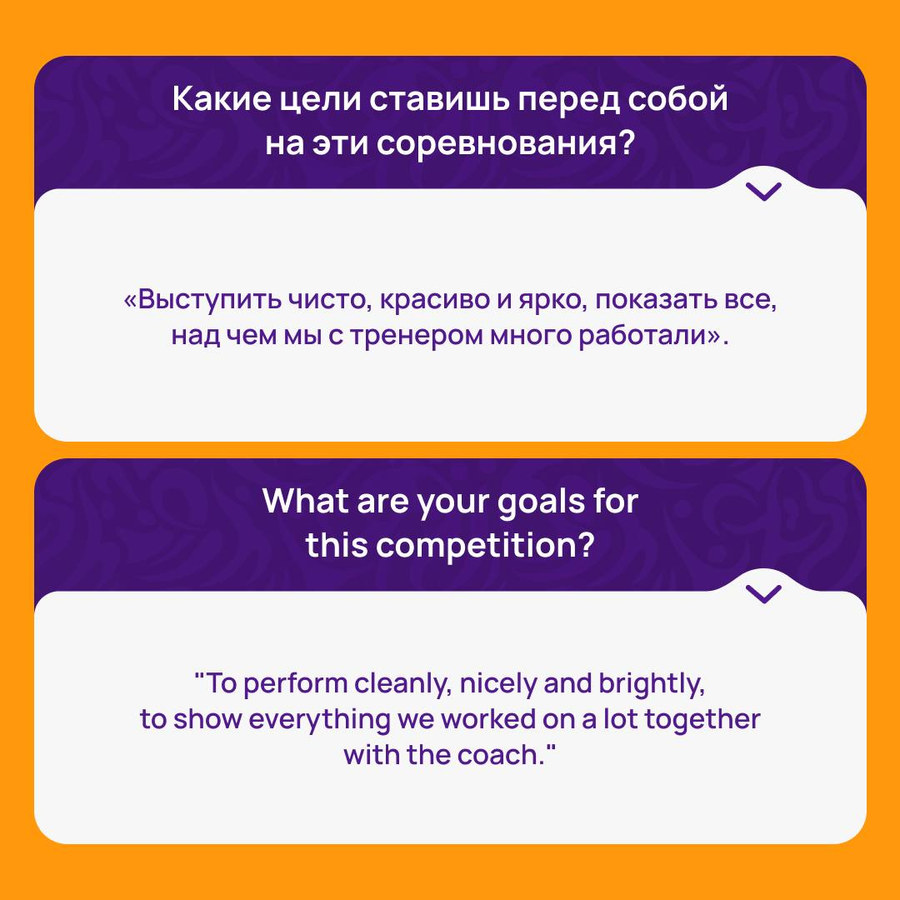 Смортсменка рассказала об ожиданиях от турнира и о том, какие цели ставит перед собой. Она также поделилась пожеланиями соперницам.