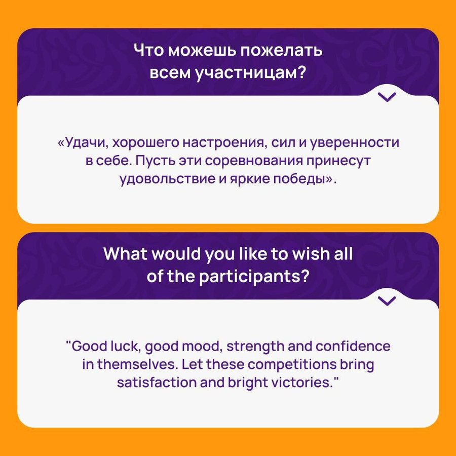 Мы также узнали, что спортсменка хотела бы пожелать остальным участницам.