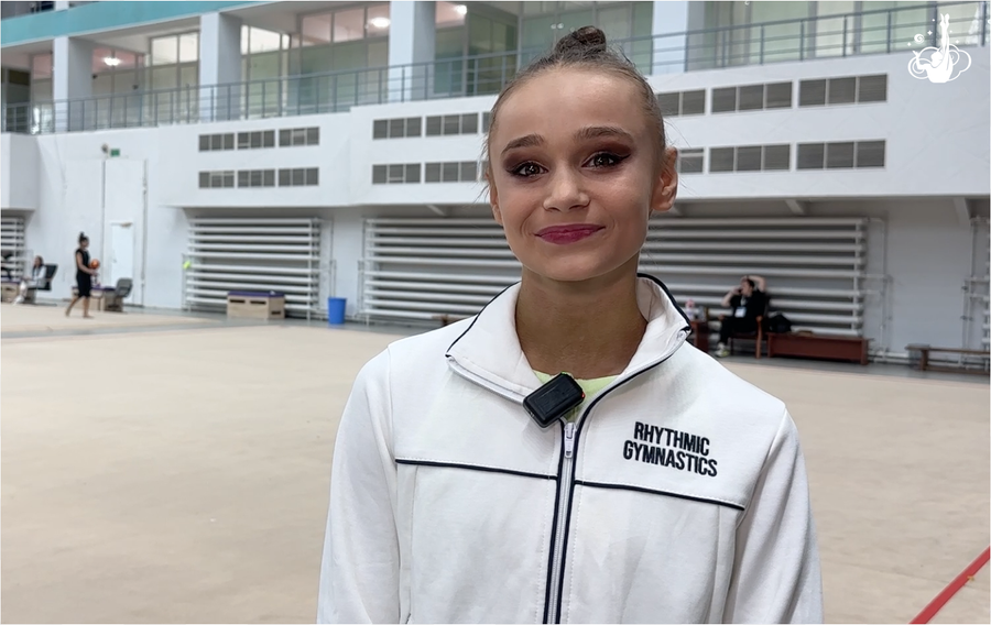 «Мне тут очень понравилось. Я тут была в первый раз. Сначала мне было немного страшно, потому что мы зашли в зал — он такой большой, там такой высокий потолок. И когда мы были на опробовании, там около основной площадки очень много пространства. И было страшновато. Но потом уже я привыкла и было очень комфортно выступать. Нам помогала наша любимая Евгения Михайловна, каждый день работала с нами в зале. Екатерина Медоровна каждый день проводила хореографию с нами, и тем самым у нас хорошо получились элементы. Спасибо большое болельщикам, которые приехали сюда за нас поболеть. Хочу сказать огромное спасибо Евгении Михайловне, Ольге Дмитриевне, Екатерине Медоровне, Алине Маратовне за то, что они нас всегда поддерживают, любят. И мы их очень сильно любим!»