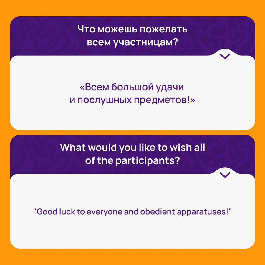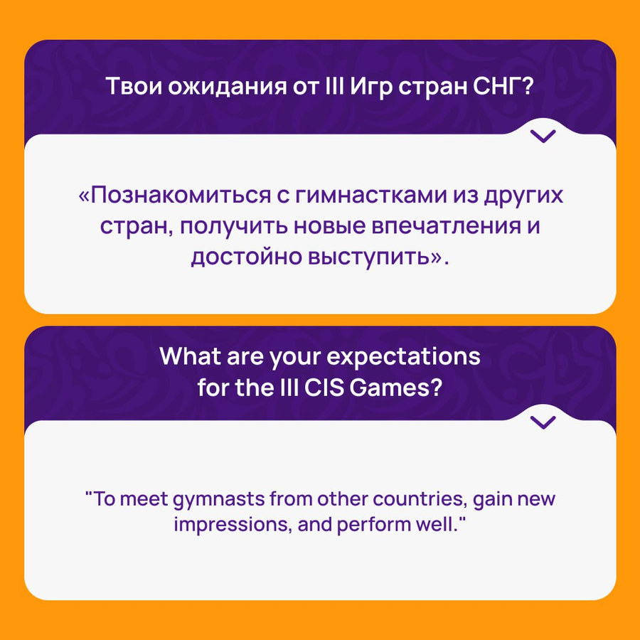 Гимнастка Ева Чевтаева из Москвы поделилась пожеланиями всем участницам III Игр стран СНГ.