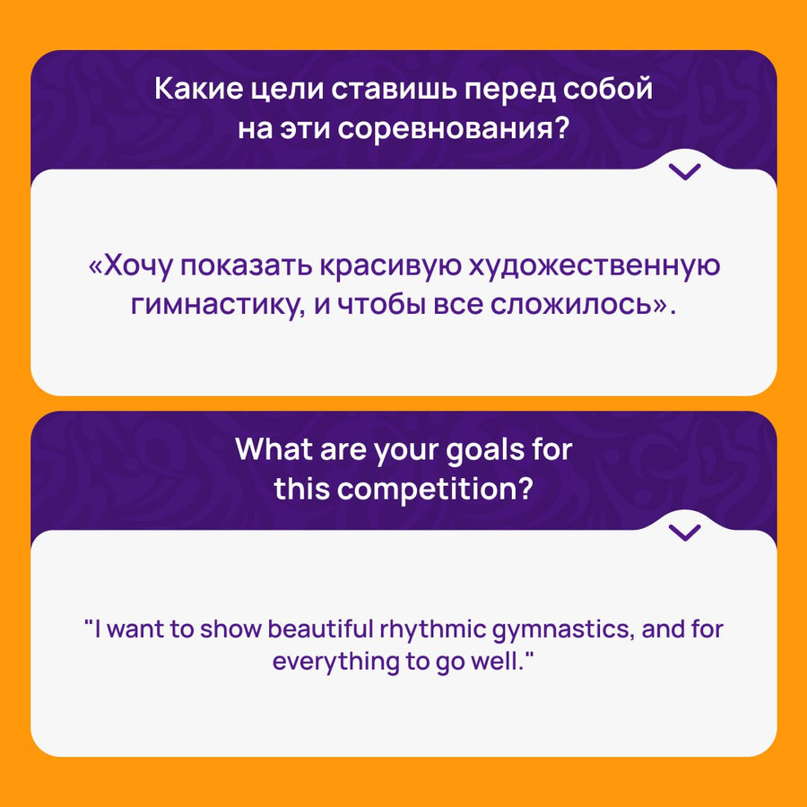 Спортсменка рассказала, какие цели она ставит перед собой на эти соревнования.