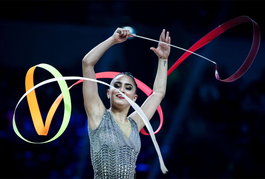 В 2021 году прошел наш первый турнир, в котором приняли участие представительницы 13 стран. Гимнастки выступали в многоборье, в программу которого вошли упражнения с обручем, мячом, булавами и лентой.
